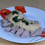 Let the oil drip off a little on kitchen paper and serve with the slices of organic lemon and a potato salad. In my opinion, a remoulade would distort the taste of the fish, so just add a little lemon juice for freshness.