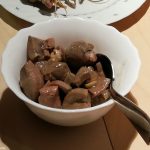 Das Original ist eigentlich, Trockenpflaumen in Serranoschinken. Die Pflaume war feucht (Wer unter 18 ist, bitte nicht weiter lesen), aber der Schinken wurde durch das Braten ziemlich trocken. Ich hab letztens mal einen Jamon iberico mit genug Fett gegessen, mit dem man das kochen könnte, aber das war eine Aktion, die schnell wieder vorbei war. Also waren Pancetta oder Bacon die Wahl, die ich zugunsten von Bacon entschied. Da es den schon fertig geschnitten gibt, ging das Rezept ganz einfach.