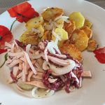 Recipes like the farmer’s breakfast is available in almost all parts of Germany. In Berlin it is made with sausage leftovers and is called Hoppel-Poppel, in Bavaria and Austria, it is made with roast leftovers of beef, pork or chicken and called Gröstl, each with the name of the meat used in advance (eg. Hendlgröstl) and in the north without the gherkins they are simply fried potatoes. This is the Hessian variant.