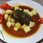 Danach würzt man 300 g Rinderhack mit Salz, Pfeffer, Knoblauch, Oregano und Minze und knetet das mit dem eingeweichten Brot zu einem Hackteig. Daraus formt man dann jeweils zwei Soudzukakia (Hackröllchen) und Keftedes (auf deutsch Frikadellen). Das andere Fleisch wird aus der Marinade genommen, die Fleischwürfel werden auf Spieße gesteckt.