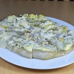 In Kalabrien bin ich mit der Kombination mit Spaghetti vermutlich unten durch, dort werden wohl hauptsächlich kurze Nudeln mit Innenloch wie Penne oder Rigatoni verwendet. Da sich aber unsere Urlaube inzwischen mit dem Auto im 1.000 km Radius bewegen, werde ich, wenn ich denn fliegen muss, andere Reiseziele ansteuern.