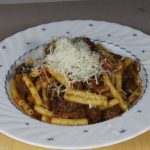 Pasta al arrabiata is one of the countless tomato sauces available alongside Napoletana. How the name implies, furious means it is hot. What I did not know until June 2019 is that it does not use pancetta but guanciale (air dried pork cheek). I use Italian canned tomatoes as a basis and like one fresh tomato. For the (light) sharpness I liked to use fresh Thai Birdeye Chiles. We now have Italian dried Pepperoncini.