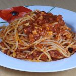 Die Spaghetti al dente kochen, mit der Tomatensauce mischen.