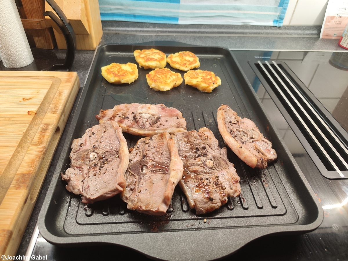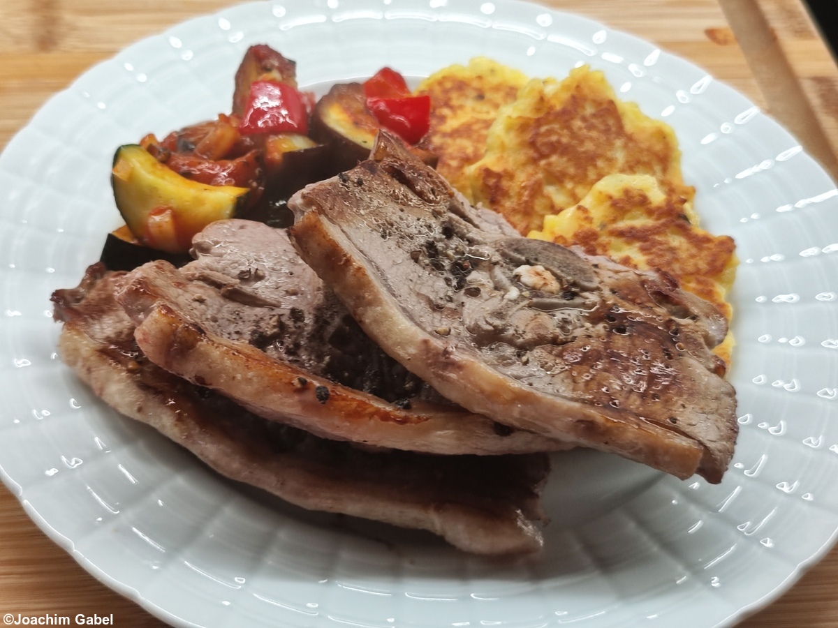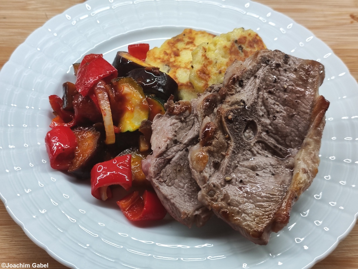 Ratatouille kann warm und kalt gegessen werden. Im Sommer bevorzuge ich es gut gekühlt. Man kann es mit einem Stück Baguette als komplette Mahlzeit betrachten, ich esse es gerne zu Lammkoteletts und gebratenen Kartoffeln in Form von Bratkartoffeln, Fritten oder Kroketten.