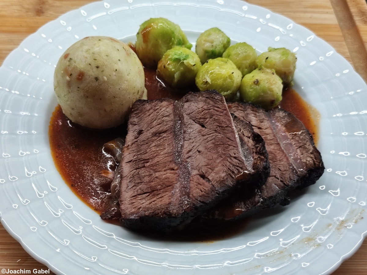 Heutzutage ist Sauerbraten meistens ein Rinderbraten, an dessen Sauce etwas Essig kommt, dieses Rezept ist das Original.