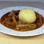Fry the whites of the spring onions in a pan in oil until translucent. Add tomato and pepper pieces, simmer for 5 minutes. Add peeled tomatoes, chilli, salt and cumin and simmer for about 20 minutes. When the liquid is largely reduced, stir in the garlic and greens of the onion bulb, squeeze holes in the mixture and gently add the eggs. Put a lid on the pan and cook the eggs in 3 – 4 minutes.
