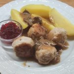 Auf Jahrmärkten gibt es dazu ein Brötchen zum Auftunken der Sauce, zuhause bevorzuge ich Reis.