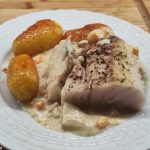 Eine schöne Kombination aus einem auf der Haut gebratenen sehr schmackhaften Fischfilet mit Süßkartoffel, abgerundet mit eine Sahnesauce mit Noilly prat. Mal wieder eine komplett selbst erdachte Kombination.